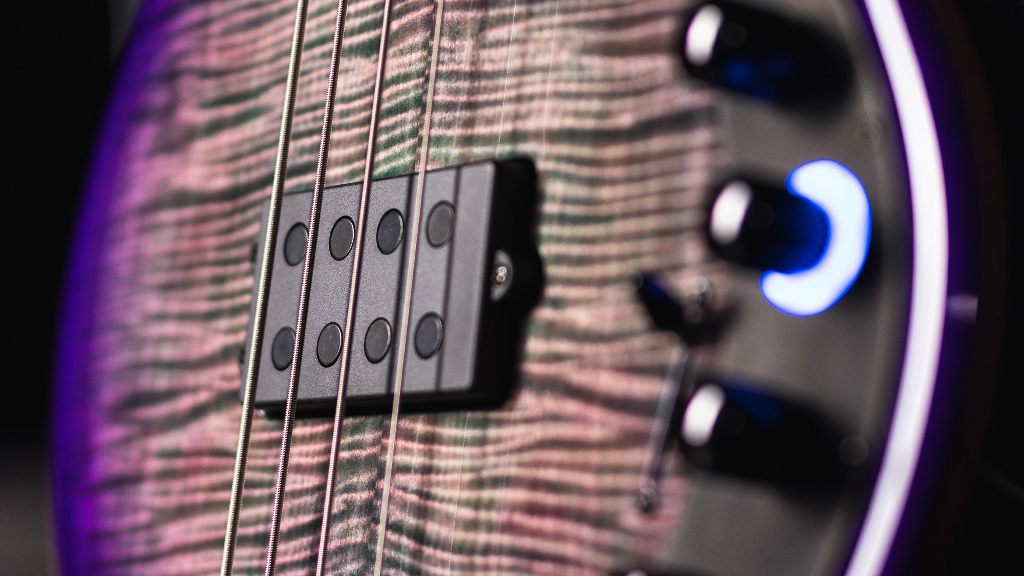 The 2-band preamp features volume, treble, and bass controls, along with a separate blend and gain knob, allowing for the precise adjustment of tone and output.