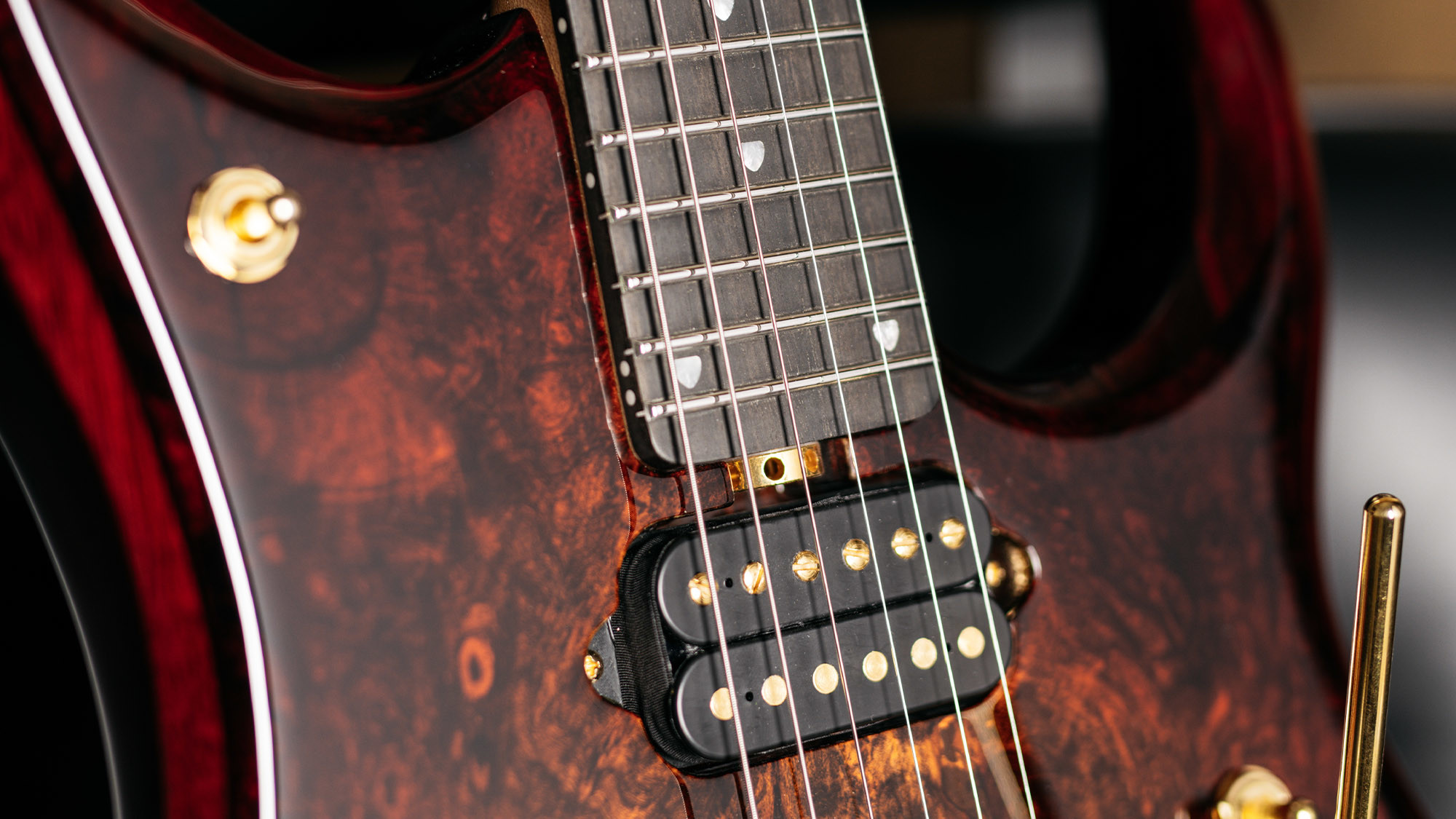 | Body Wood | Black Limba with Buckeye Burl Top |