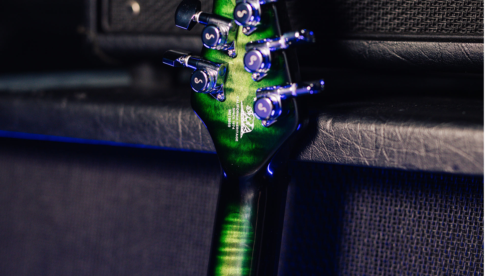 The Translucent Green Malachite finish has an alder back and sides centered around a premium figured quilt maple top.