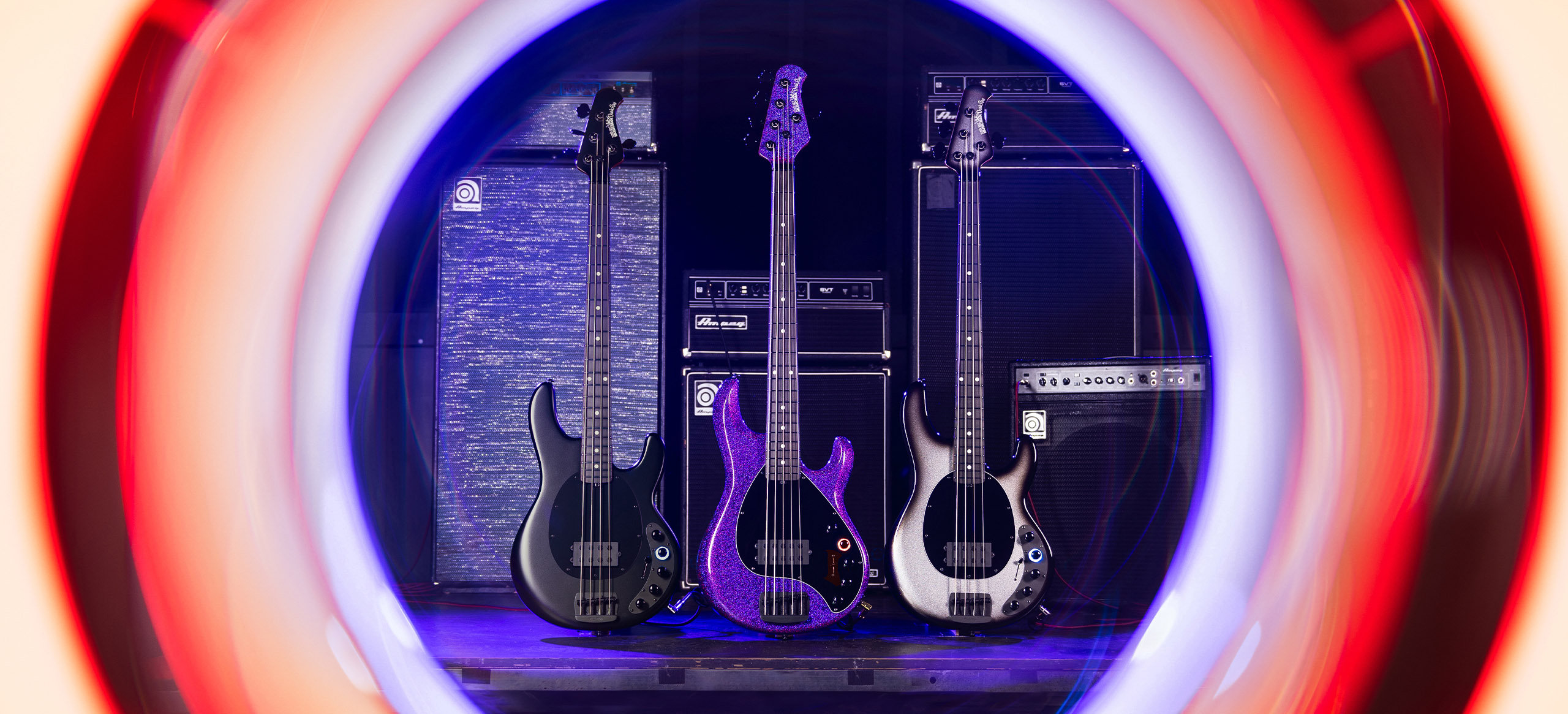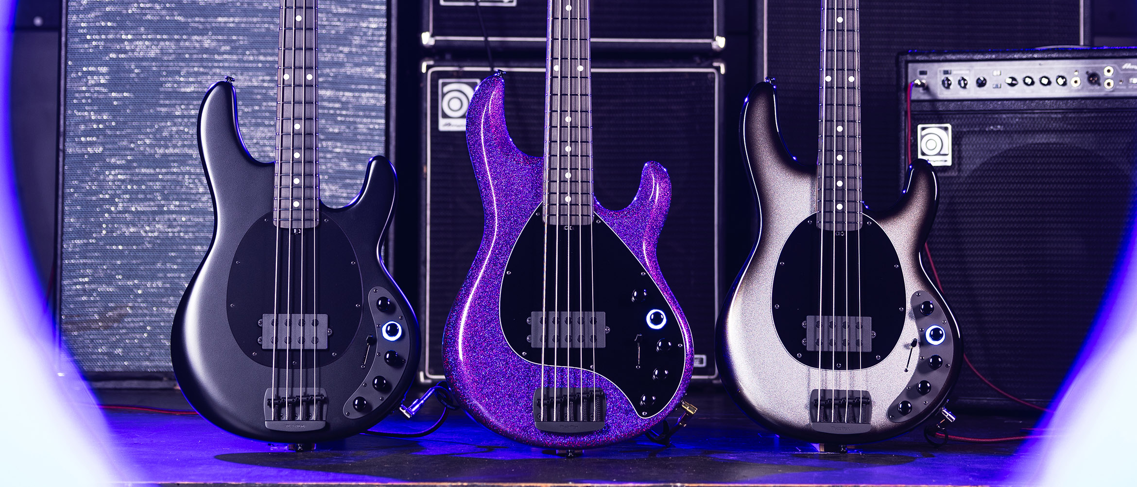 | Bridge | Vintage Music Man® top loaded Black plated, steel bridge plate with vintage Black plated steel saddles |